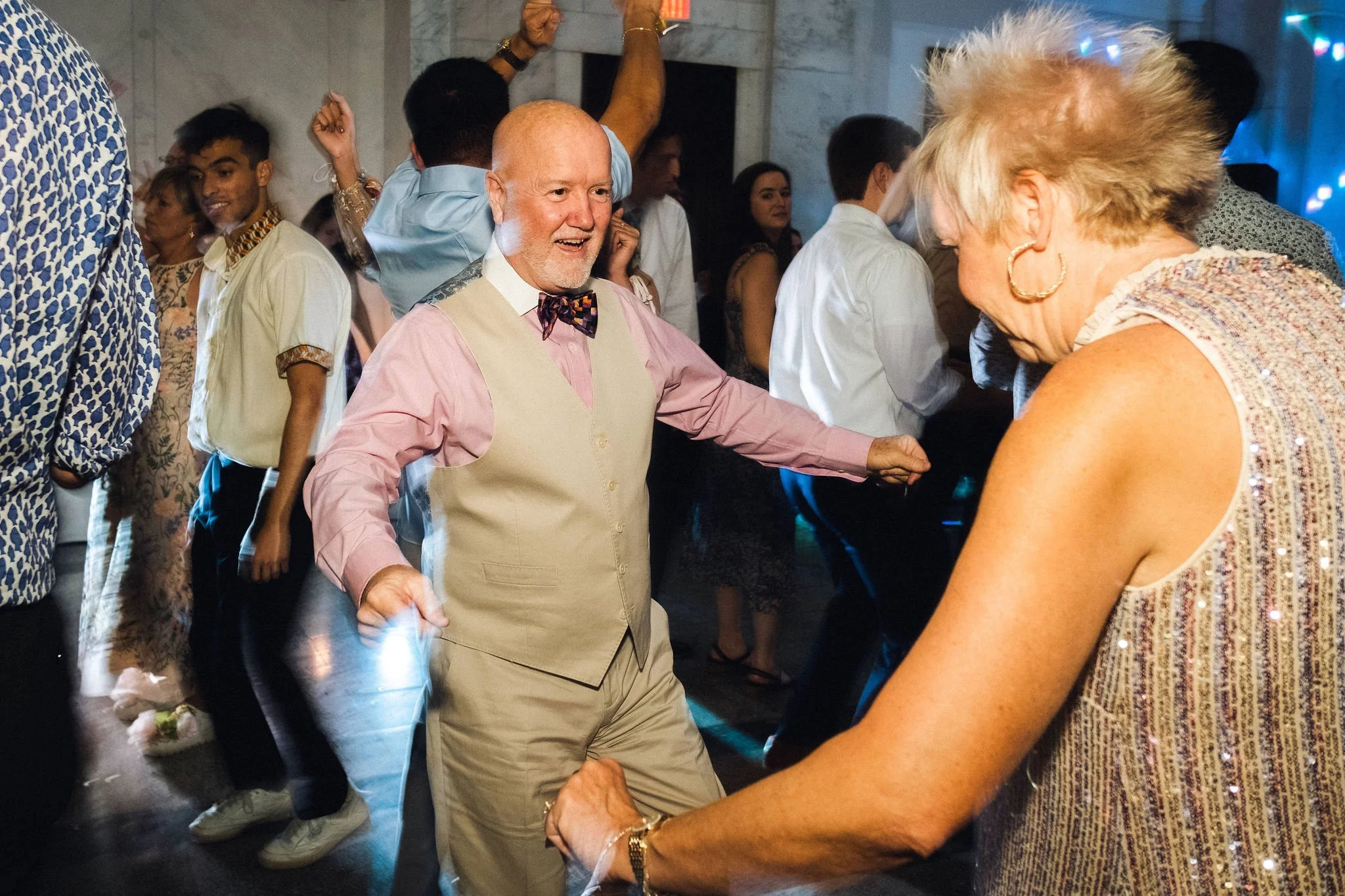 Think about the terrain — grass, gravel paths, wooden decks, ceremony overlooks, and lots of dancing.