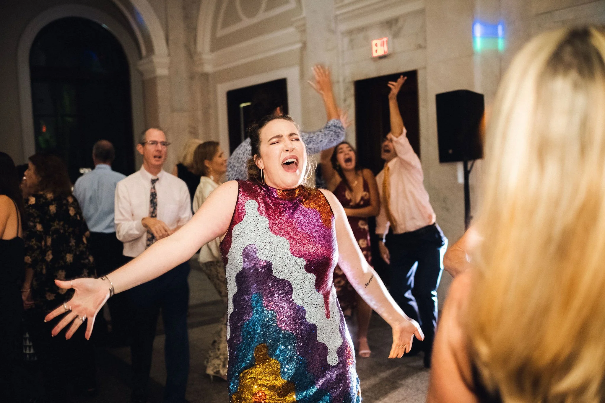 At Haley & Nathan’s Garden Disco Party wedding, bold and shiny was the whole vibe.